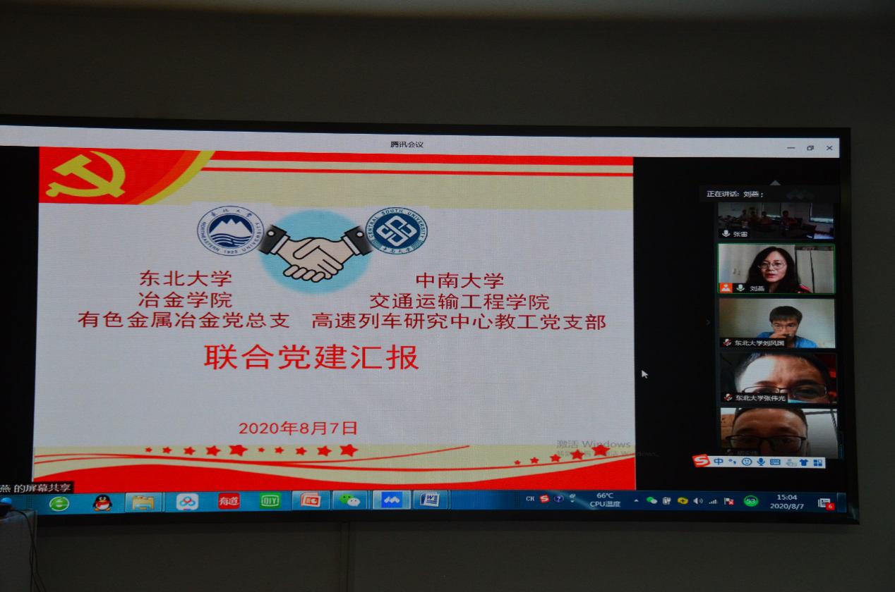 高速列车研究中心教工党支部就全国样板支部建设工作开展线上联合经验交流会。高速列车研究中心教工党支部鲁寨军书记等5名支委在中南大学高速列车研究中心会议室同东北大学的同仁们进行了经验交流。