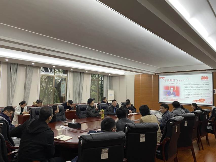 接着,支部宣传委员李盈利主讲“学史明理”学习专题,全体教职工党员参加。围绕“中国共产党为什么能”“马克思主义为什么行”“中国特色社会主义为什么好”,李盈利重点讲解了16条基本道理。在集体学习后,所有参会党员均结合自己学习、科研、教学、生活等方面谈学史明理的感受和体会。大家都认识到学习党史的重要性和必要性,并做了具体的学习计划。最后,鲁寨军再次强调学习党史不能流于形式,要求全体党员务必在党史学习中真正汲取智慧,指导行动,不断提高共产党员的政治判断力、政治领悟力、政治执行力。