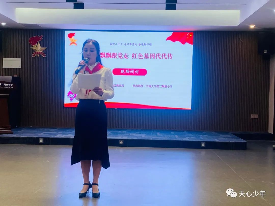 本次研讨会采用线下+线上相结合的模式进行。天心区各学校近千名少先队辅导员通过天心智教平台进行线上学习,中南大学第二附属小学还组织全体师生共同观看、学习。