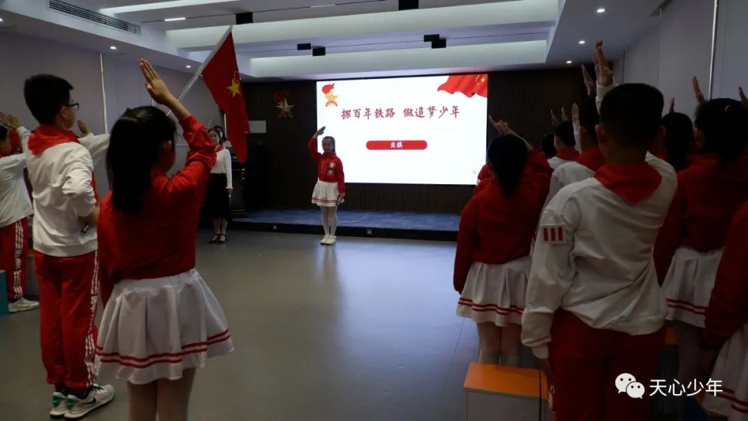 接下来,中南大学第二附属小学中队辅导员陈丛奕老师带领梦想中队带来了《探百年铁路,做追梦少年》队会展示。队会分为三个篇章:“筑梦”荣光——寻百年历程,“逐梦”先锋——追榜样足迹,“追梦”少年——看强国有我 。本次队会还邀请了中南大学铁道电子竞技博彩 高速列车中心团队周伟叔叔来到现场接受队员们的访谈。一百年风雨兼程、砥砺拼搏,队员们从中不仅看到了中国铁路的发展历程,更深刻感受到一代代铁路人敢于创新、团结合作、乐于奉献的精神。他们从中传承了红色薪火,立志要为实现中国梦接续奋斗,成为一颗闪闪发光的未来之“星”。