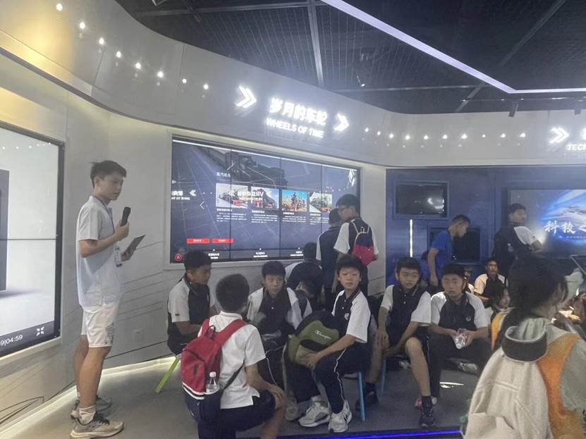 据胡文华报:7 3 日上午 9 时,长郡双语实验中学 C2432 班全体同学走进中南大学轨道交通科普基地,在三位志愿者的引导下开启了一场沉浸式轨道交通科学探索之旅。
