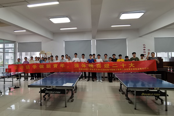 为提高党员的综合素质,加强支部凝聚力,丰富支部文化生活,5月11日下午15:00,交通运输第二学生党支部和交通设备与控制工程第三学生党支部在交通楼五楼乒乓球活动室联合举办“学讲话争做新青年,强体魄喜迎二十大”五月主题党日活动,开展了主题党日系列活动——趣味乒乓球比赛。