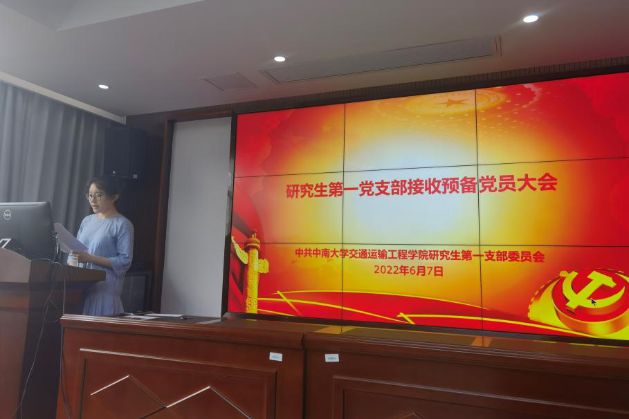 6月7日上午10:00,电子竞技博彩 研究生第一党支部接收预备党员大会在交通楼425顺利举行。会议由支部组织委员战映辰同志主持。