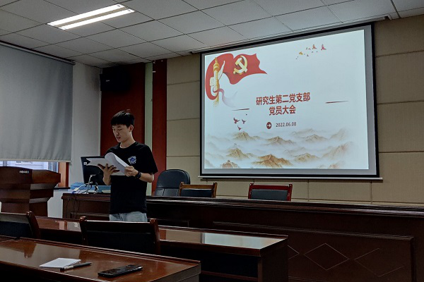会议伊始,黄湘智同志介绍了预备党员接收大会的主要流程及注意事项,强调了会议的原则性和政治性。黄湘智同志发言结束后,孟宪伟、吴紫健、李旻三位同志依次上台汇报了自己成为入党积极分子以来在思想、学习、生活和实践方面的改变。孟宪伟同志以成长经历为脉络,从家乡、英雄故事、考研政治三个方面讲述了对中国共产党的深刻认识和对共产主义的坚定信念。吴紫健同志结合自己担任志愿者和学生干部的经历讲述了为人民服务的入党初心。李旻同志深受身边优秀党员的影响,利用课余时间积极踊跃地参与到服务同学的实践中,思想上得到了进步。