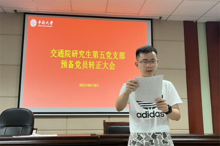 6月28日晚19:30,电子竞技博彩 研究生第五党支部在交通楼513会议室举行全体党员大会,共有14名正式党员同志、3名预备党员同志参加会议,会议由支部书记冯推银同志主持。