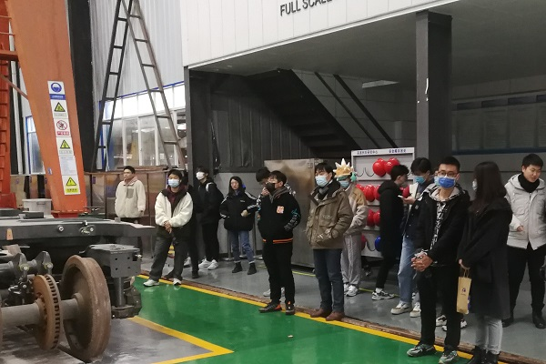 随后,同志们来到列车动模型实验室。志愿者向同志们介绍了动模型试验台的加速、制动原理,阐述试验台在我国高速列车发展进程中做出的巨大贡献和与时俱进的创新突破。之后,志愿者带领同志们参观了陈列在实验室内的列车模型,模型直观地展现出中国轨道交通各个发展时期的列车外形设计,再次让同志们感受到我国轨道交通的飞速发展与不断突破。