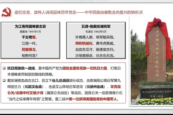 接下来,研究生第二党支部代表曾捷同志就为什么要学党史和为什么要用诗歌学党史这两个问题,带领党员们一起品读伟人诗词,品味百年党史。“雄关漫道真如铁,而今迈步从头越。”“不到长城非好汉,屈指行程二万。”“今日长缨在手,何时缚住苍龙?”这一句句诗词经过千百年的浸润和洗礼,已经成为中华民族的文化基因,成为了中国人的精神皈依,是中国共产党百年奋斗历程形象生动的历史书。