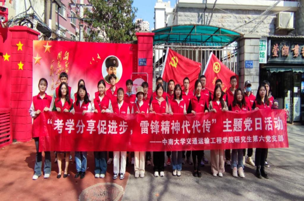 3月5日,中南大学交通院研究生第六党支部围绕“向雷锋同志学习”题词60周年雷锋志愿服务精神,组织支部全体党员在长沙市清水塘社区红色服务站开展为期半天的“考学分享促进步,雷锋精神代代传”主题党日活动。