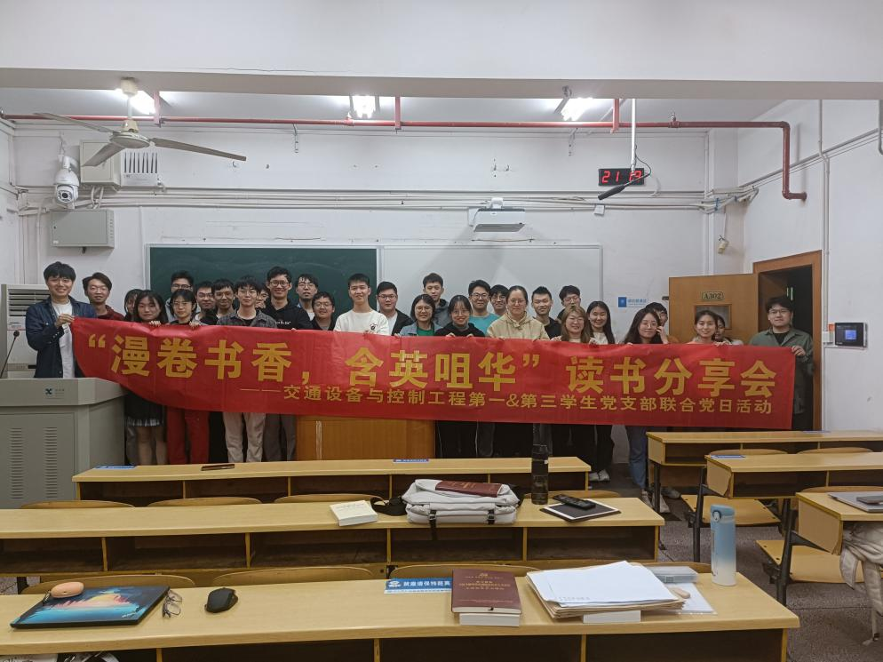4月26日晚19:00,为丰富党支部成员课余精神生活,促进党支部文化建设,电子竞技博彩 交通设备与控制工程第一学生党支部联合交通设备与控制工程第三学生党支部在世纪楼A302开展了主题为“漫卷书香,含英咀华”的读书分享会,由八个小组派出代表同学来分享本组的读书心得和从中感悟。