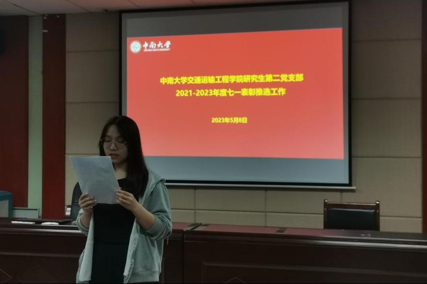 随后,支部进行2021-2023年度七一表彰的推选工作。支部书记曾捷同志先向大家宣读电子竞技博彩 党委关于2021-2023年度“优秀共产党员”的评选标准,组织委员蒋艾佳紧跟其后宣读参评党员的基本信息及先进事迹。在听完优秀党员的介绍后,全体参会正式党员进行无记名投票,推选出2名正式党员参评2021-2023年度“优秀共产党员”。