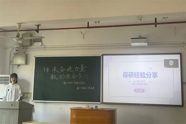 活动伊始,主持人李朵介绍此次活动的流程并对来参与此次活动的同学表示欢迎,活跃了现场气氛。紧接着,各位分享者结合自身保研经历从不同角度进行了交流分享。保研至东南大学的章欣妮同志从院校选择、保研前期准备、夏令营经验、现阶段学习建议四个方面对与会同学进行分享,她希望同学们不论身处哪个阶段都需要保持良好的心态,相信自己;直博至同济大学的郭翼成同志结合自身向与会同学分享了直博的经验以及个人学习经验,她指出这是一场信息战,需要同学们积极关注有关信息;保研至上海交通大学机械工程的徐富昇同志从交通设备专业的角度详细讲解了设备专业的院校选择、保研信息整理、保研文书准备以及夏令营面试的问题;获得支教保研资格的徐淑婧同志向与会者分享了支教保研流程内容与资料准备,并结合自身经历分享了支教保研需要的优势与条件;保研至中山大学的纪阳子同志、保研至上海交通大学的李欣语同志、通过中南大学“本—博”拔尖计划的齐萌同志对保研政策术语解读以及时间线进行了梳理并给大家进行了讲解,使同学们对优秀营员、预推免、志愿填报等有了系统的认识。