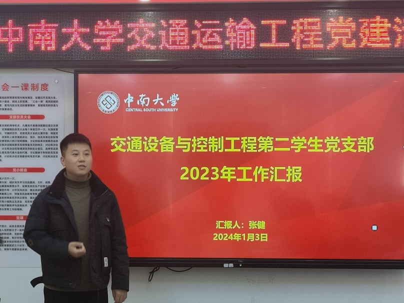 1月3日,交通设备与控制工程第二学生党支部于第一综合教学楼党建活动室举行支部党员大会。本次会议由杨佳乐同志主持,会议分为三项流程:一是支部书记张健同志进行述职汇报,二是开展党员民主评议,三是支部集体观看学习《榜样8》专题节目。