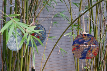 在学习完漆扇制作的基础知识后,党员同志们满怀期待地前往非遗漆扇制作现场,首先挑选了各自心仪的扇子形状,然后将大漆滴入清水中,轻微搅拌后将白色扇面放入水中,或旋转,或轻摇,不同的摆动方式和幅度所获得的图案独一无二,各有千秋;绚丽多彩,高贵典雅。