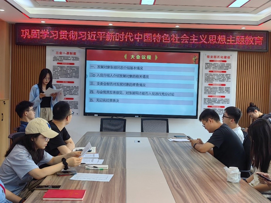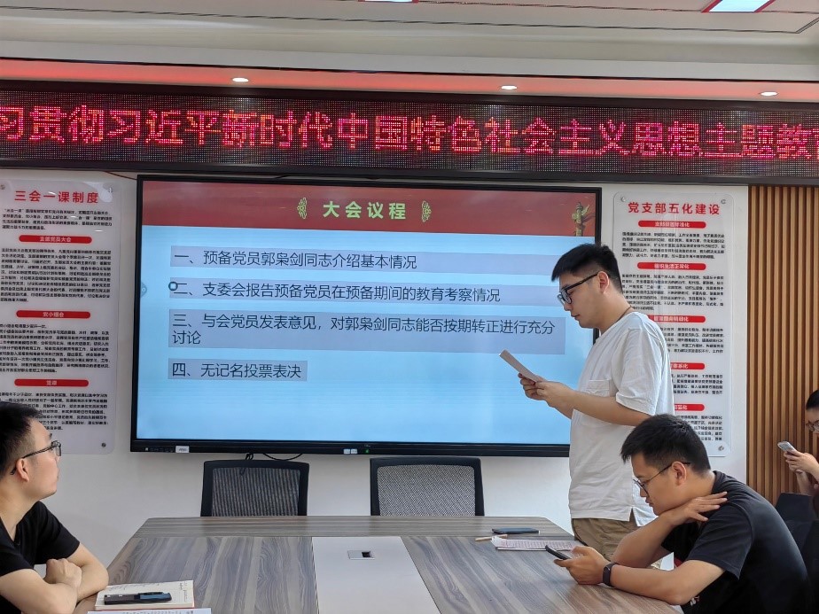 会议伊始,陈灏同志简单介绍了会议流程和要求。会议包括对接收杜紫嫣同志、张娜同志两位发展对象为预备党员,以及预备党员郭枭剑同志转正问题的讨论。
