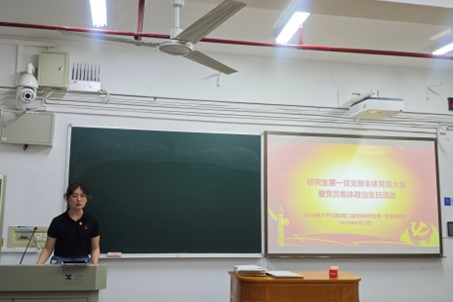 6月13日21:00,研究生第一党支部在世纪楼A202举行党员大会暨党员集体“政治生日”活动。会议由支部组织委员周婧盈同志主持,支部全体党员出席本次会议。