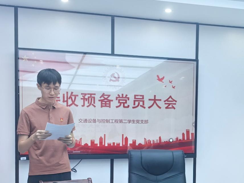 交通设备与控制工程第二学生党支部预备党员接收大会顺利举行