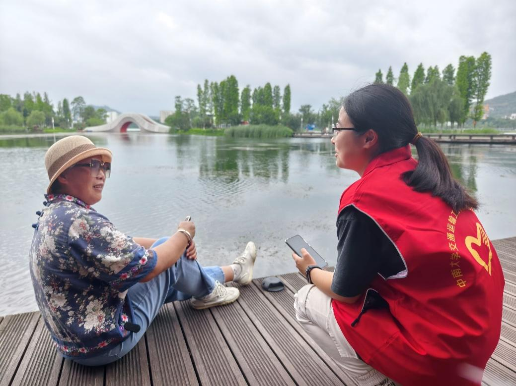 在感知生态、捡拾垃圾的过程中,同志们还对垃圾分类开展了宣传活动。为了调动群众参与的积极性,宣传活动采用小问答的方式进行,成员选择一些具有实用性的垃圾分类小问题询问群众。面对面的问答形式区别于讲解,更能调动居民群众对活动的积极性、提高其参与度,实用的小问题也更贴近生活,加强了宣传与生活的联系,使宣传更深入人心。