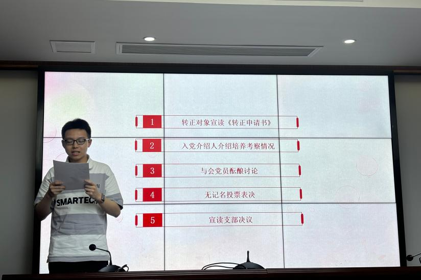 6月13日19:00,研究生第三党支部在交通楼425举行党纪学习教育暨预备党员转正大会。组织委员侯泓阳同志主持了此次会议,全体党员参与。