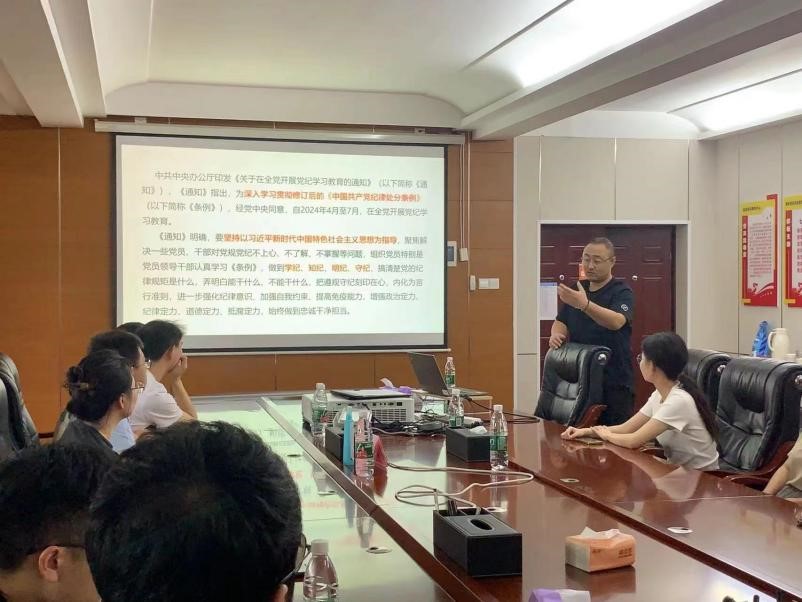 首先,支部同志对《中国共产党纪律处分条例》进行了集中学习。随后,王家斌老师讲述了科研、工作中的一些违纪案例,向同志们强调学纪、知纪、明纪、守纪的重要性。他指出,作为科研人员要警惕学术不端行为,严格遵守学术规范和道德准则。同时,他还对支部同志提出了两点注意,一是要增强对网络舆情和外界信息中虚假内容的辨别能力,时刻保持清醒的头脑和理性的思维;二是在海外留学时保守涉密信息,自觉维护国家的安全和利益,提高政治站位,同时维护好人身安全和自身利益。