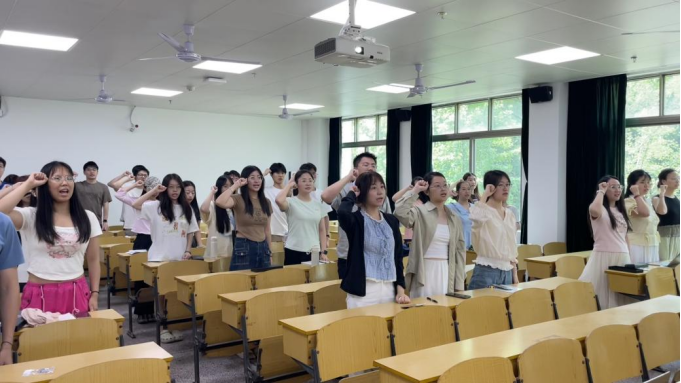 最后,在支部组织委员刘思序同志的带领下,支部全体党员重温入党誓词,追忆入党初心,不忘共产党员的责任和使命。本次会议为交通院研究生第一党支部注入了新的力量,进一步坚定了党员们的初心使命,同时对毕业生党员同志寄予厚望,希望其持续发挥先锋模范作用,将个人理想融入党和国家事业,融入交通强国建设的伟大征程中,以实际行动为母校增光添彩,努力成为推动交通事业发展的主力军和可靠接班人。