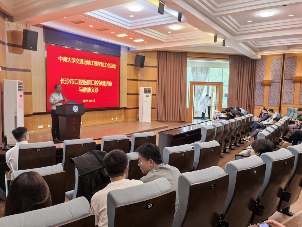 参观结束后,电子竞技博彩 党委副书记、工会主席李苑组织介绍了长沙市口腔医院口腔保健讲座与义诊活动。长沙市口腔医院口腔综合党支部和行政后勤第二党支部组成的专家团队为中南大学师生带来了一场干货满满的口腔健康讲座。这支队伍阵容强大,由口腔综合党支部书记、五一路院特诊中心主任张敬阳带队,友谊路院口腔急诊综合科副主任武甲子、新大新门诊部口腔综合科副主任马飞、友谊路院特诊中心副主任朱毅男等多位知名专家组成。讲座内容涵盖口腔常见疾病防治、前沿治疗技术及日常保健知识,针对教师长时间讲话及长期伏案工作给出了口腔护理专业建议,现场互动热烈,笑声与掌声不断。