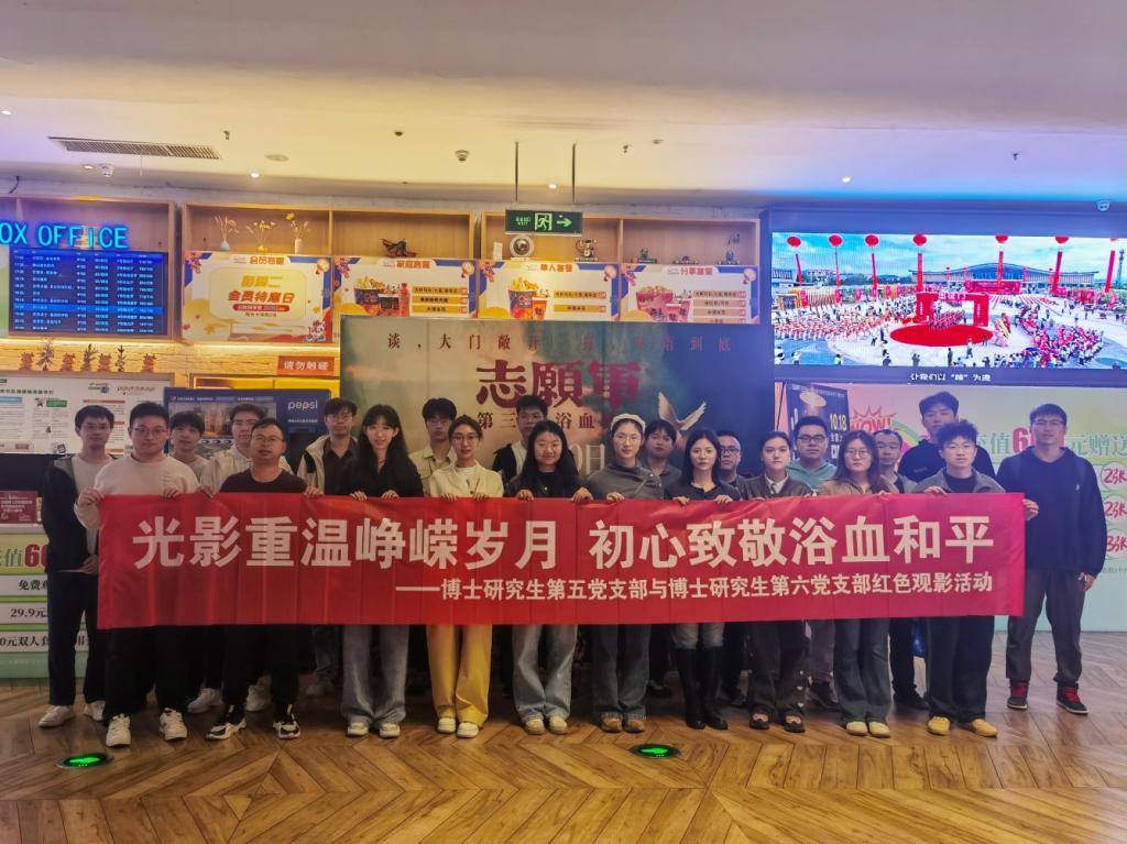 为铭记光辉历史,赓续红色血脉,推动党史学习教育与作风建设常态化长效化,11月1日下午,博士研究生第五党支部与博士研究生第六党支部联合组织开展了“光影重温峥嵘岁月,初心致敬浴血和平”红色观影主题党日活动,集体观看红色影片《志愿军:浴血和平》。活动旨在激励广大博士研究生党员深入了解抗美援朝战争的艰难光辉历史,缅怀志愿军先烈的丰功伟绩,在新征程上继承和发扬伟大的抗美援朝精神。