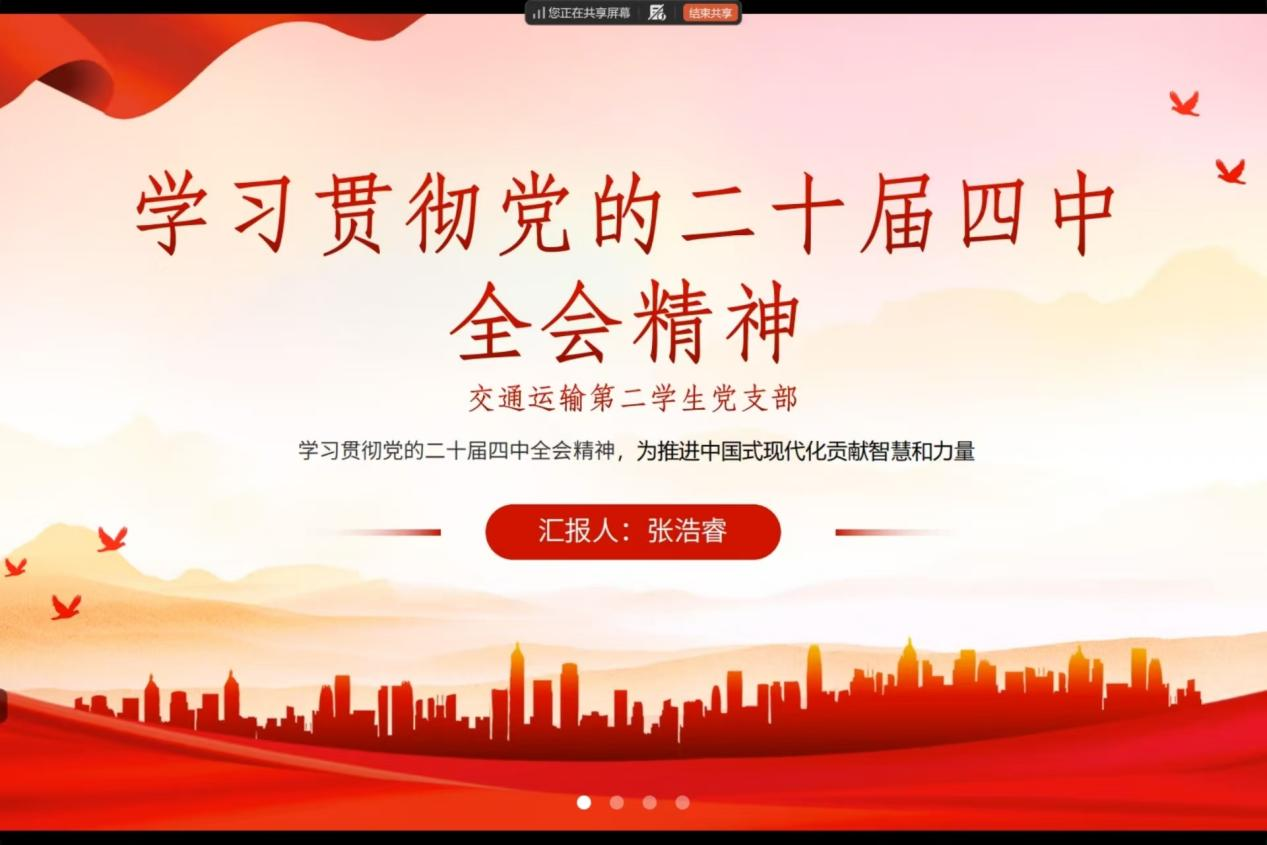 11月27日19:00,电子竞技博彩 交通运输第二学生党支部于线上召开学习党的二十届四中全会精神专题研讨交流会,支部书记王尚君同志主持会议。