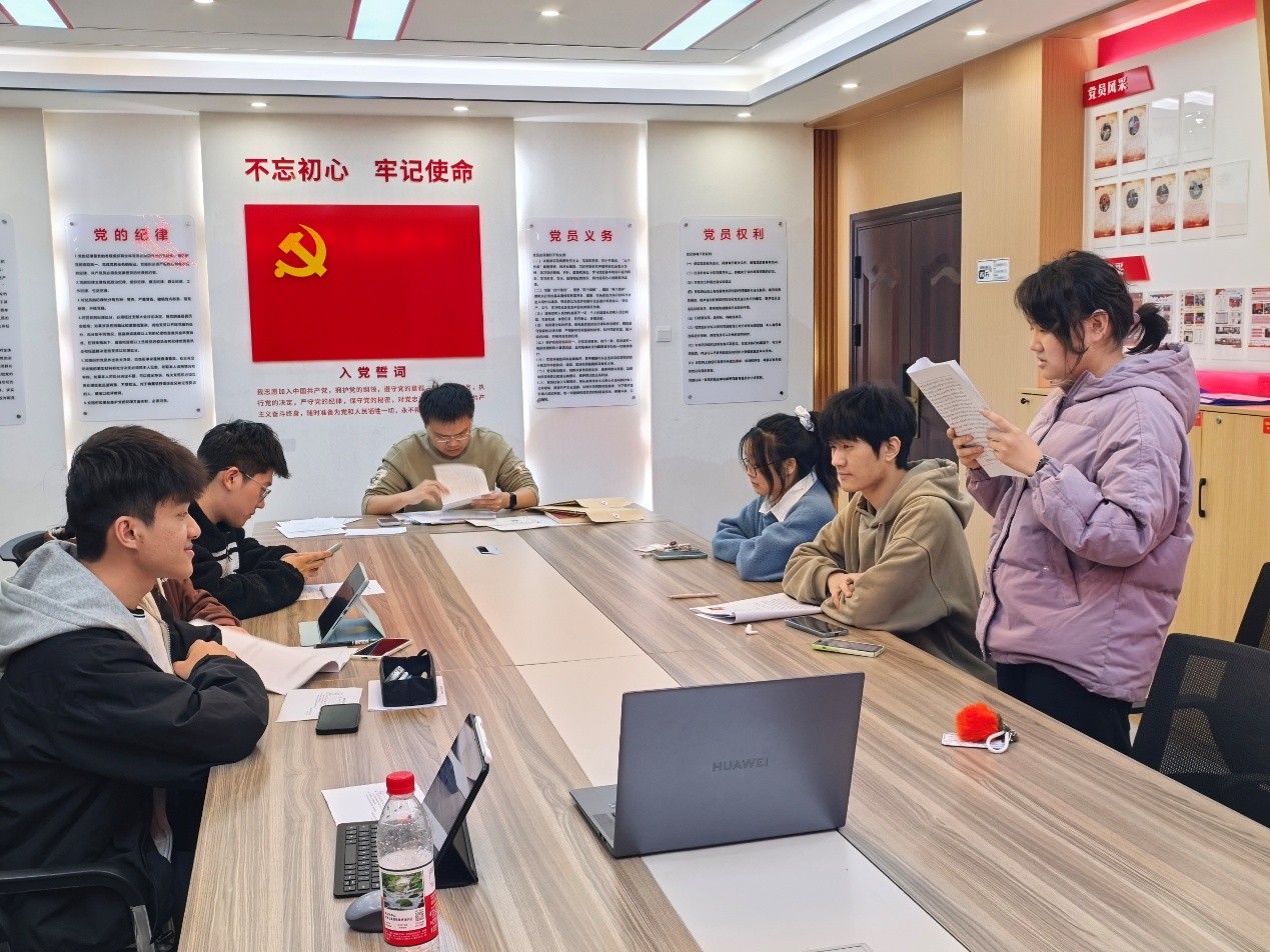 本次会议严格依据《中国共产党发展党员工作细则》开展,突出党员发展工作的政治性与严肃性。会议伊始,刘子森、黎佳瑞、王一涵、魏宏途4位发展对象依次宣读《入党志愿书》,汇报内容涵盖对党的理论认知、入党动机及个人经历等。接着,入党介绍人详细介绍了发展对象在思想提升、学业表现、社会实践等方面的具体情况。随后,王尔博同志向大会报告发展对象政治审查综合情况。