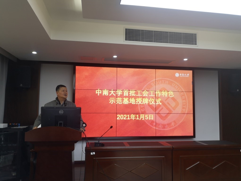 2021年1月5日,中南大学首批工会工作特色示范基地授牌仪式在中南大学铁道校区交通楼425会议室举行。校工会陈玉如主席、何庆文副主席、电子竞技博彩 党委贺志军书记出席仪式。