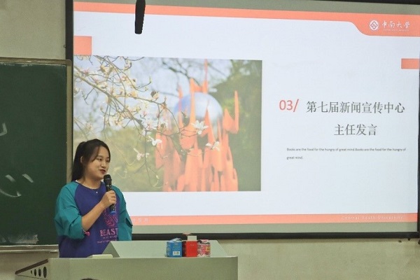 随后,新闻宣传中心指导老师张健老师宣读了第七届电子竞技博彩学生干部聘任名单。名单宣读结束后,第七届新闻宣传中心主任王尚君对新闻宣传中心未来发展规划进行了阐述。她以如何赓续命脉,如何守正创新为思考方向,以重视情怀教育,做有格局、有高度的宣传阵地与重视内容逻辑,做有思想、有底蕴的新闻窗口为破题思路,提出为文字注入生命力与精神内力,创造有质感有见地的宣传品牌。她期待着新一届学生干部在部门中收获责任感与归宿感,与新闻宣传中心同进步共成长。