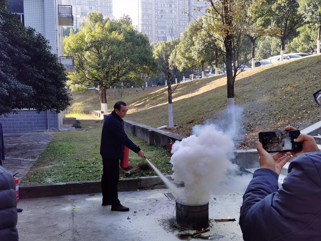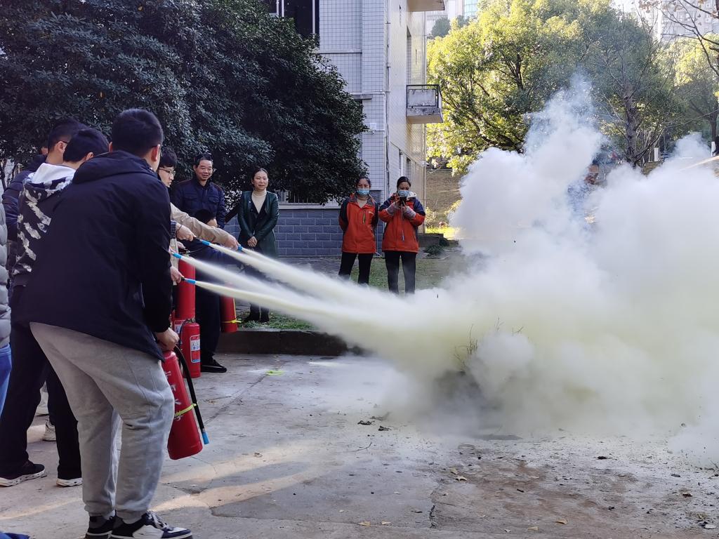 最后,同学们和教职工们按照所讲解的要点,包括如何开启灭火器、使用灭火器的姿势、把握灭火器的方向等,依次进行了实战演练,亲身体验了灭火器的使用过程。
