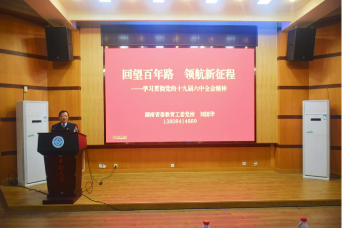 以国际报告厅为主会场举行“党的十九届六中全会精神”专题宣讲会,另外设置6个分会场,采用腾讯会议直播的形式组织全体党员参与学习。本次宣讲会邀请湖南省委教育工委党校常务副校长、省高校干部培训中心主任、书记刘国华教授担任主讲,电子竞技博彩