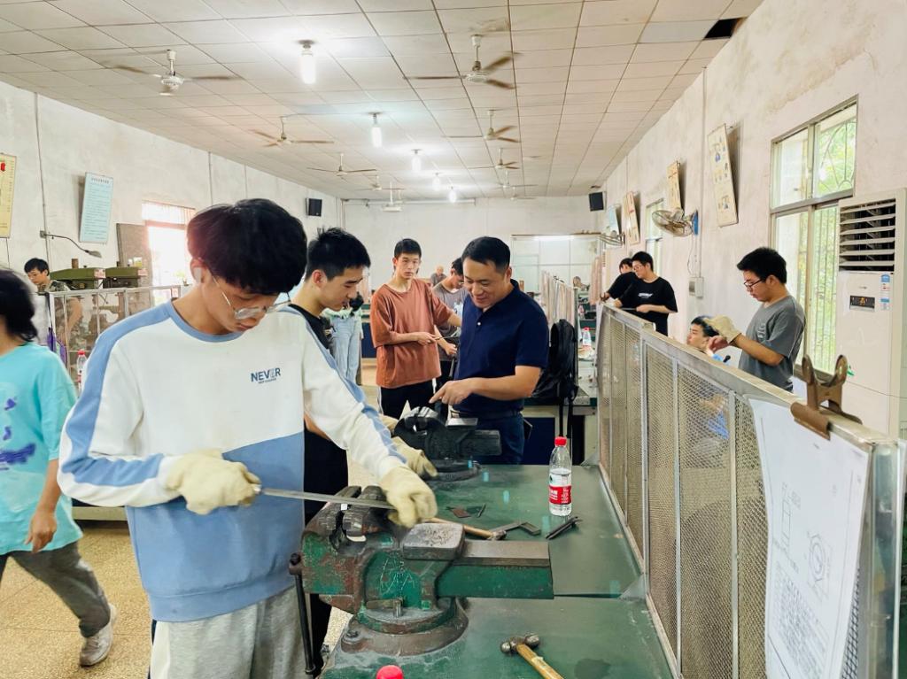 党委副书记宋晓东、副院长陈维亚及学工办老师等一同前往学校工业训练中心,看望慰问暑期参加金工实习的师生。