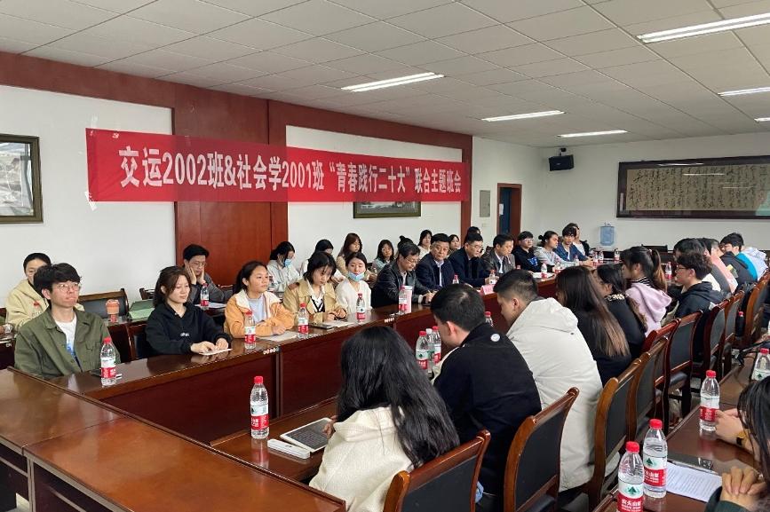3月8日下午,交运2002班与社会2001班联合班级于铁道校区交通楼513室举行“青春践行二十大”主题班会。中南大学党委副书记黄健陵、交通院党委书记贺志军、交通院党委副书记宋晓东、公管院党委副书记耿贵斌、交运2002班班导师冯芬玲老师、社会2001班班导师刘惠颖老师、交通院2020级辅导员石晓琪老师、公管院2020级辅导员孙立明老师出席本次班会,联合班级全体同学参加本次班会。本次班会由交运2002班团支书秦浩天主持。