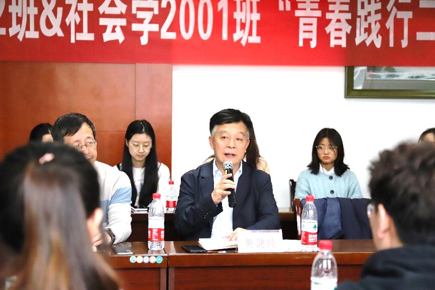 班会最后,校党委副书记黄健陵对本次班会进行总结点评,并就接下来青年学子如何更好学习贯彻二十大精神结合自己学习体会与在场学生指导交流。黄书记肯定了同学们对党的二十大学习成果,鼓励同学们沿着二十大指引的方向奋力前进。黄书记还对同学们提出希冀:一是要坚持中国共产党的领导,坚定捍卫“两个确立”;二是要把自身前途命运同国家民族命运紧紧联系起来,肩负民族复兴重任;三是要怀抱梦想又脚踏实地,践行科技报国的初心使命,助力学校“四个转型”发展战略的推进。