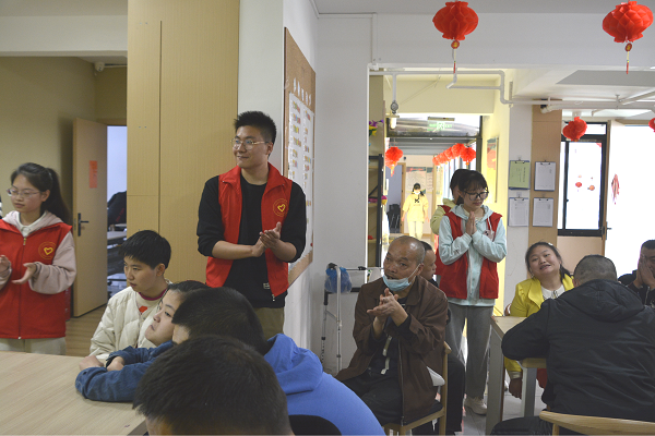 的青年志愿者们经过一个多小时的车程,来到了长沙市岳麓区怡智家园精神康复所。刚刚踏入大门,志愿者们便受到了来自怡智家园的老师们和残障人士学员们热情的欢迎。在稍作准备和了解后,志愿者们便开启了与学员们相处的美好下午。