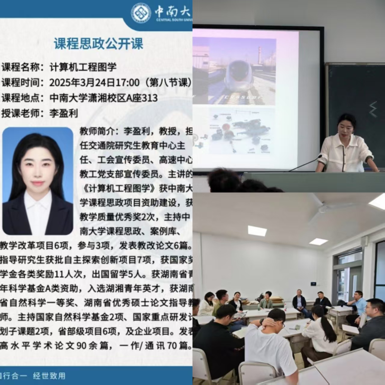 课程思政教学研究中心的主体作用,3月24日下午,交通院在潇湘校区A座313教室举行“计算机工程图学”课程思政公开课,学校专家随堂听课,各系所教师到场观摩。