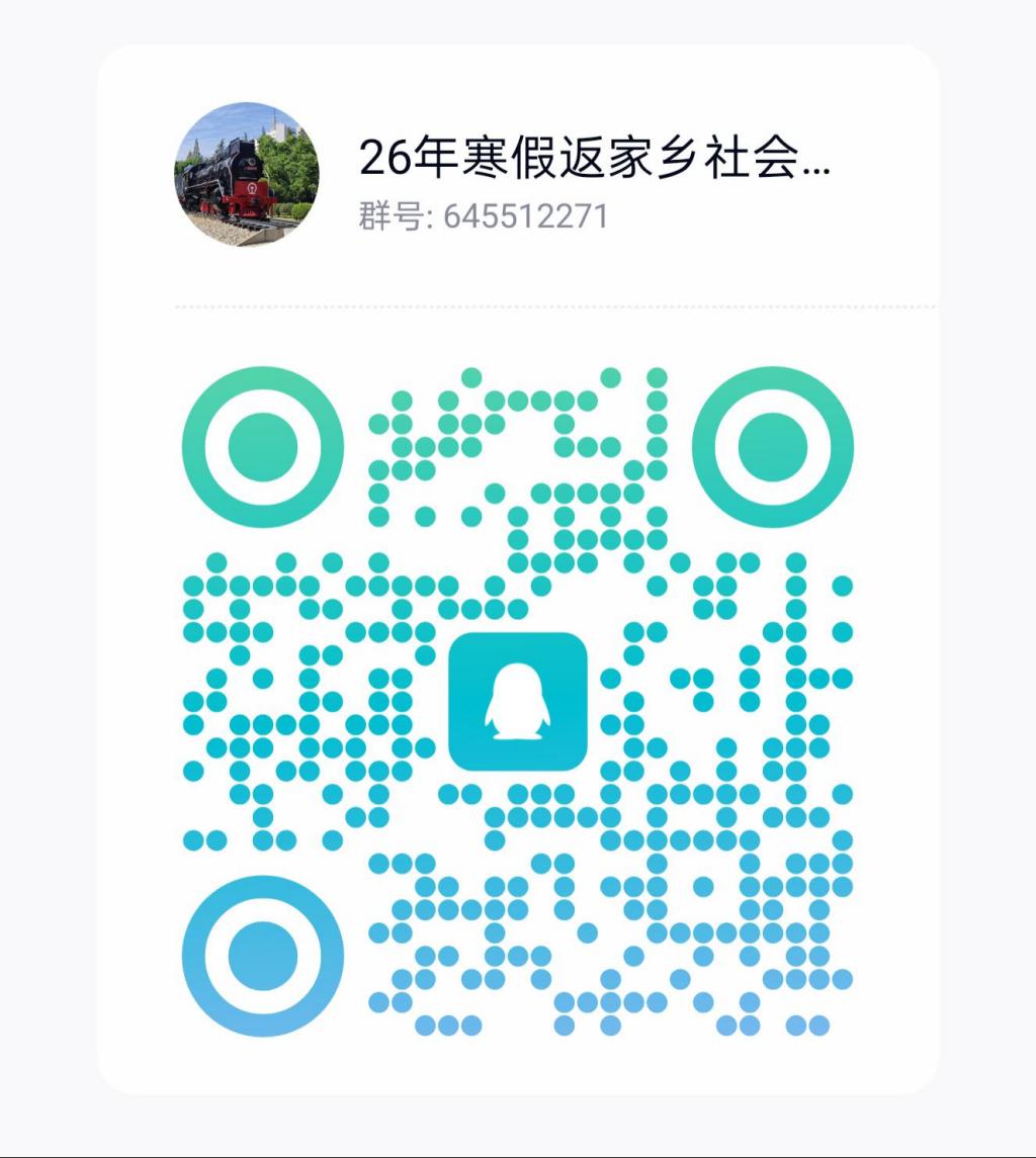 2026年学生寒假“返家乡”社会实践活动通知群:645512271,请有意愿参加活动的师生及时加群。