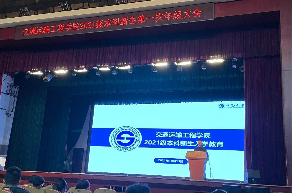 10月13日下午三点,电子竞技博彩 在南校区大礼堂举行了2021级本科新生第一次年级大会。电子竞技博彩 党委副书记宋晓东,2021级辅导员张健老师、王羽珊老师以及交通院全体2021级学生参加了此次大会,会议由王羽珊老师主持。