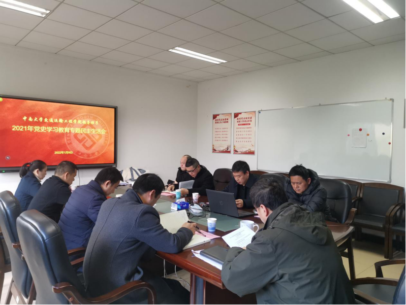 电子竞技博彩 领导班子于2022年1月9日下午在交通楼322会议室召开了党史学习教育专题民主生活会,以大力弘扬伟大建党精神,坚持和发展党的百年奋斗历史经验,坚定历史自信,践行时代使命,厚植为民情怀,勇于担当作为,团结带领人民群众走好新的赶考之路为主题,联系实际工作,联系带头贯彻落实习近平总书记重要指示批示和党中央决策部署的实际,联系带头学党史、悟思想、办实事、开新局的实际,联系带头严格执行中央八项规定及其实施细则和解决形式主义突出问题,回顾一年来加强自身建设情况,总结成绩,查摆不足,进行党性分析,开展批评和自我批评。学校党史学习教育第四巡回指导组组长姬志洲书记出席会议,学院党委书记贺志军主持会议,院领导高广军、宋晓东、彭勇、张英贵、陈维亚、韩锟、刘辉参加会议。