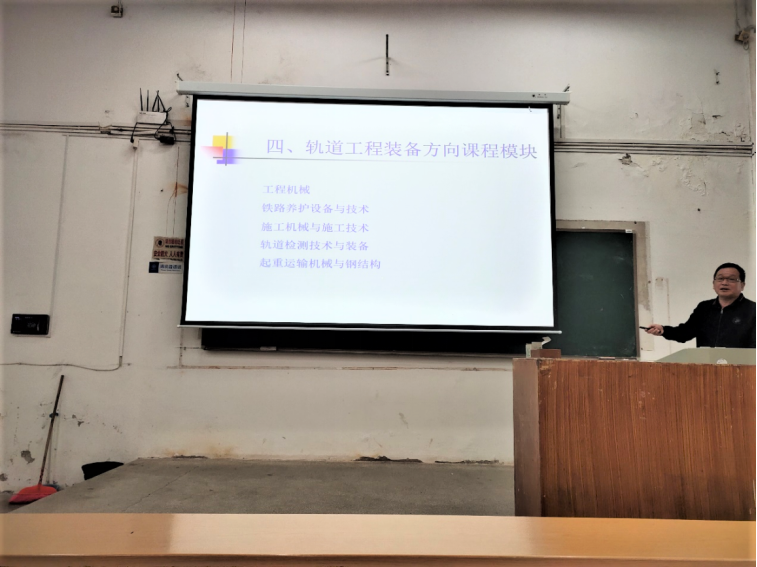 随后,应立军老师则详细介绍了轨道工程装备方向的课程模块、就业方向、教师科研项目。他提到,轨道工程装备方向主要培养学生系统深入掌握轨道交通装备技术实现轨道养护、检测智能化,轨道工程装备专业拥有高速铁路先进装备实验室和铁路工程装备研究所,开展的国家和省部级科研项目取得了多项国家级奖项。
