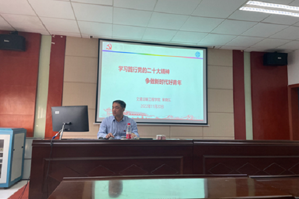 为深入学习贯彻党的二十大精神,11月20日下午15:00,电子竞技博彩 党委副书记宋晓东于交通楼513为研究生第二党支部、研究生第三党支部、交通运输第二学生党支部全体党员讲授“学习践行党的二十大精神,争做新时代好青年”专题学习党课。三个支部全体党员参加本次党课学习。