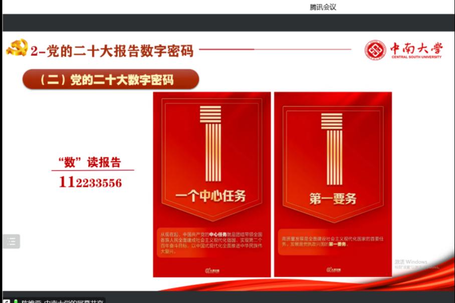 12月28日下午16:30,电子竞技博彩 党委委员、副院长陈维亚教授线上带领交通运输与物流工程学生党支部、博士研究生第六党支部开展了“数读二十大密码,争当新时代青年”主题党课。此次党课由交通运输与物流工程学生党支部书记张佳琪老师主持,两个党支部全体同志参加。