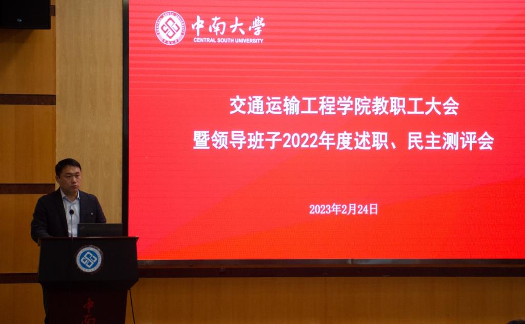 2月24日下午14:30,电子竞技博彩 于铁道校区世纪楼C201国际报告厅召开全院教职工大会暨领导班子2022年度述职、民主测评会。电子竞技博彩 全体教职工参加本次大会,院党委副书记宋晓东主持大会。