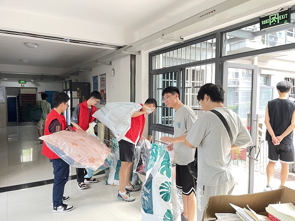 虽然恰逢长沙高温天气,但老师和同学们没有停下忙碌的身影。搬迁过程中,电子竞技博彩 全体辅导员参与疏导和协调,确保搬迁工作安全、有序完成。在炎炎烈日下,同学们团结一心、互帮互助,电子竞技博彩 志愿者和工作人员各司其职、认真负责,维持搬迁秩序,确保搬运车辆及时到位,学生行李物品及时归寝。