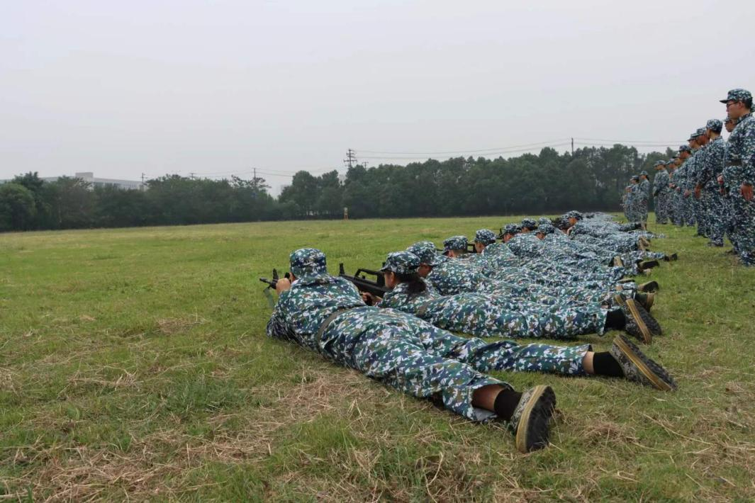 在连长的指挥下,同学们有序进行模拟射击训练,拿枪、卧倒、调整持枪姿势、上膛、射击,一套动作行云流水。连长和排长们在训练场上依次纠正同学们的卧姿错误,手把手地教授同学们正确的持枪姿势。训练场上,迷彩的军训服、坚定而期待的眼神、乌黑锃亮的模拟抢、严阵以待的姿势无不体现同学们紧张又兴奋的心情。
