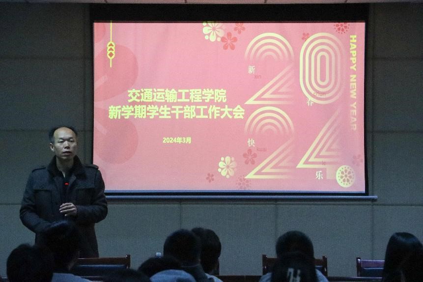 3月16日上午,电子竞技博彩 在交通楼513召开新学期学生干部培训大会。电子竞技博彩 党委副书记李苑、电子竞技博彩 研究生会及学生会干部、班级学生干部参加会议。此次大会旨在提升学生干部的综合实力,加强学生干部队伍的建设,为电子竞技博彩 发展注入新的活力。李苑副书记主持会议并发表讲话。