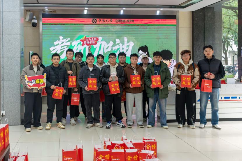 12月15日11时,电子竞技博彩 在交通楼一楼大厅举行考研学子慰问活动。电子竞技博彩 党委书记袁世平、党委副书记李苑、辅导员张健、蔡明旭、阮琼参加活动,为即将奔赴考场的学子们送上精心准备的“金榜题名”考研礼包及诚挚祝福。