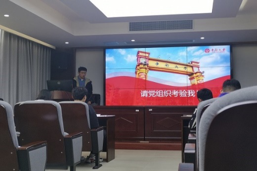 会议伊始,马赛同志介绍了本次答辩会的流程。紧接着,十六位发展对象候选人依次上台做个人情况陈述,他们分别就个人情况、学习成绩、学生工作、校园经历、志愿服务、实践经历、入党动机以及对党的理解等方面进行了说明。每位候选人介绍个人基本情况后,党支部成员针对其汇报内容进行提问。