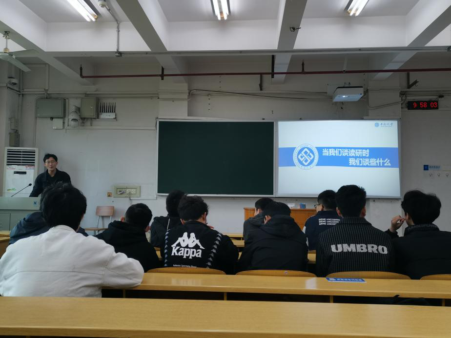 随后,保研至中南大学的王豫同志分享了自己的保研感悟,她认为,大家应当提前了解目标学校的主要研究方向,从自身兴趣以及未来发展前景等多个方面认真考虑,慎重选择。另外,她希望同学们把握大三的机会,努力学习专业知识,乾坤未定,一切皆有可能。